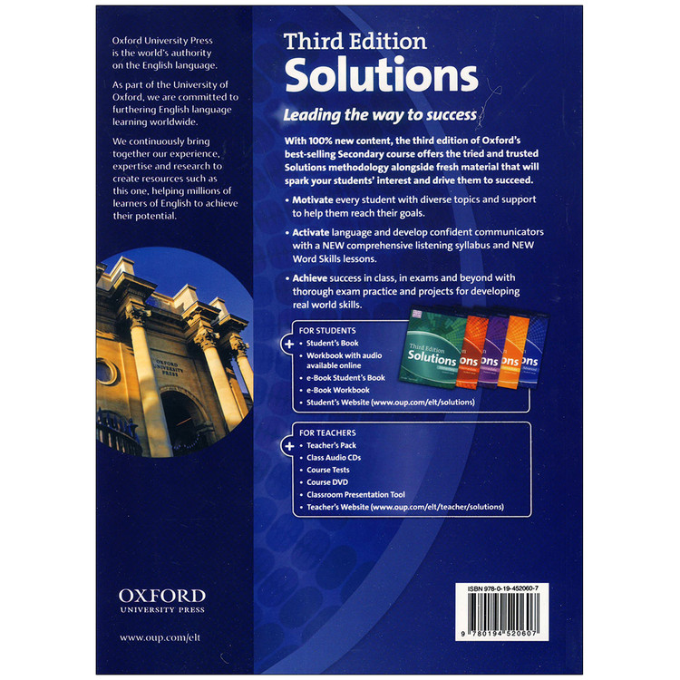 کتاب Solutions Advanced – Third Edition یکی از معتبرترین منابع آموزش زبان انگلیسی برای زبانآموزان پیشرفته است که توسط انتشارات آکسفورد منتشر شده است. این کتاب با رویکردی نوین به مهارتهای اصلی زبان (Speaking, Listening, Reading, Writing) پرداخته و زبانآموز را برای شرکت در آزمونهای بینالمللی مانند IELTS و TOEFL آماده میکند.