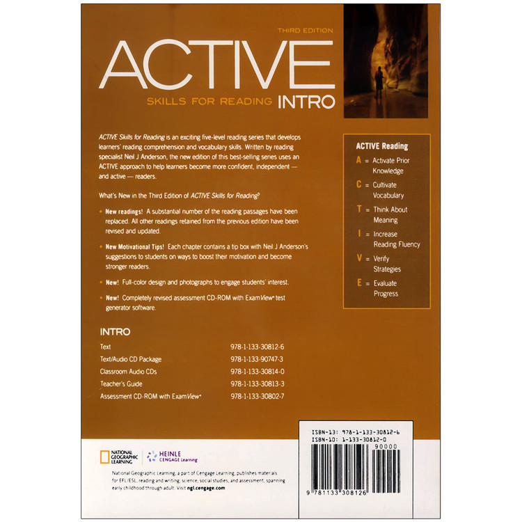 کتاب Active Skills for Reading Intro – Third Edition یکی از پرفروشترین منابع آموزش مهارت خواندن زبان انگلیسی است که توسط Neil J. Anderson و از سوی انتشارات National Geographic Learning منتشر شده است.
