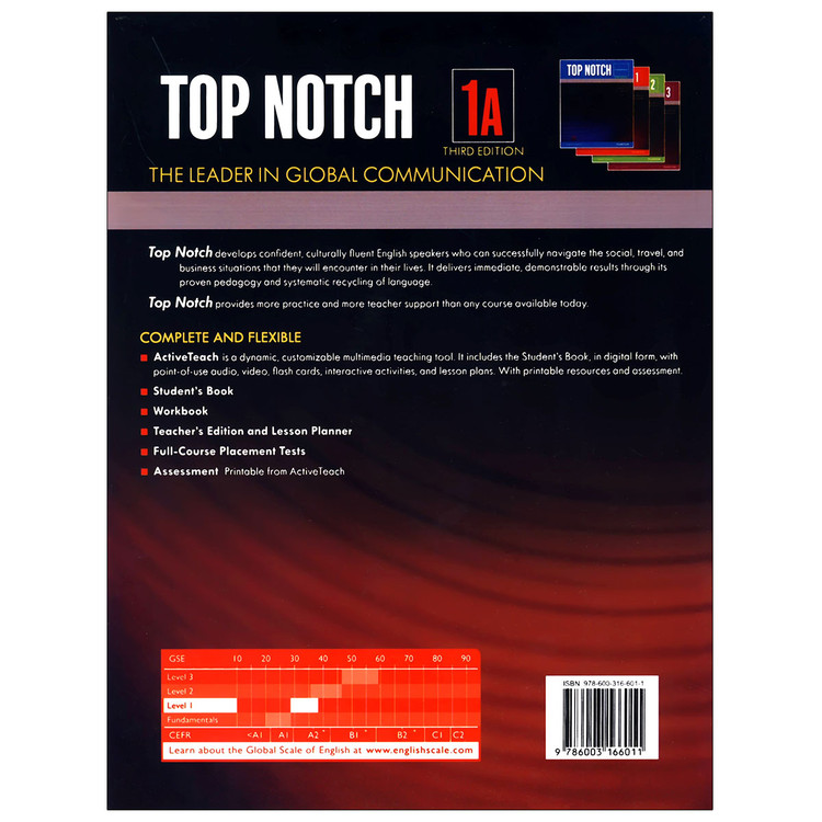 مولفان Top Notch سعی کرده اند تا تمرکز زبان آموز به تمام مهارتهای زبان اعم از خواندن، نوشتار، شنیدار و صحبت کردن باشد. اما، آنچه شاید بیش از همه این موارد خودنمایی می کند مهارت شنیداری و صحبت کردن است. تمرین های طبقه بندی شده این کتاب به زبان آموز کمک می کند تا در زمینه های گوناگون بتواند بحث و گفتگو کند.